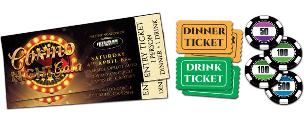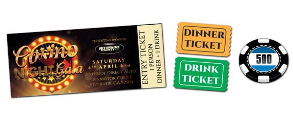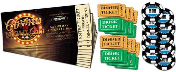 Includes: $500 in Chips, 1 Drink Ticket, and Dinner.