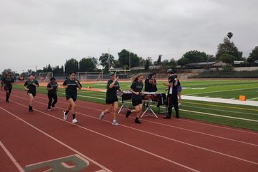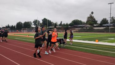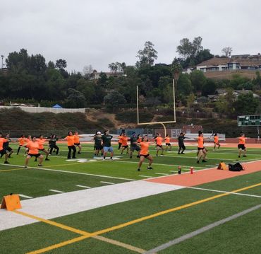 The split day helps us avoid the sun. We generally practice on the football field in the morning when it's coolest, and music/choreography in the evening as it cools off.